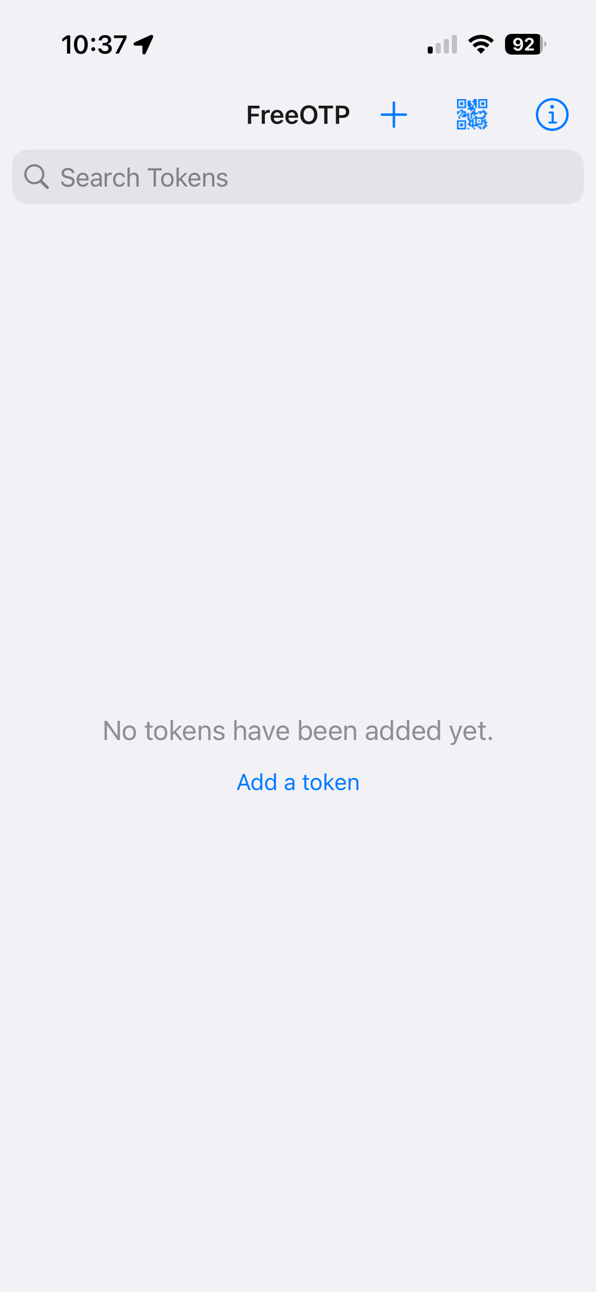 Nach der Installation von FreeOTP ist zunächst eine leere Datenbank zu sehen.